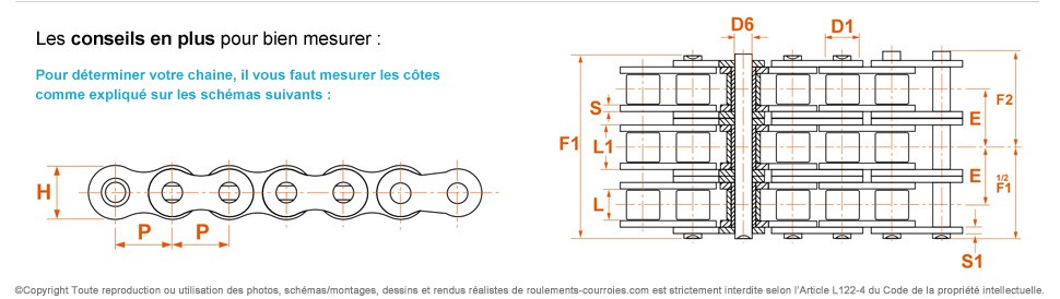 Chaine acier triple à rouleaux, norme ISO ou ASA. Coupée au détail. Ces chaines sont découpées à la demande et ne peuvent être reprises.