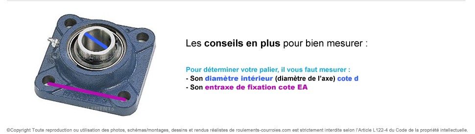 Palier en fonte carré fixation 4 trous type F (FY). Fourni avec un roulement serrage vis pointeaux. Il se détermine par le diamètre intérieur du roulement (d) en mm. Et l'entraxe de fixation au carré. Toutes les cotes sont disponibles sur le schéma des fiches produits. En fonction des marques de palier quelques cotes peuvent différées, ce qui est peu important.