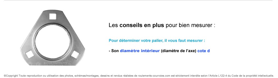 Palier tôle triangulaire fixation 3 trous. Comprend les deux flasques en tôle mais pas le roulement.