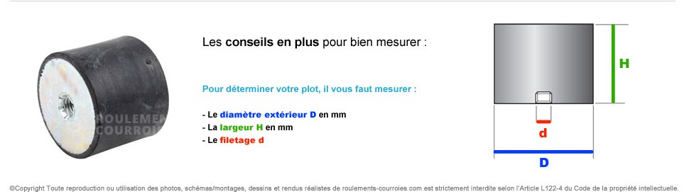 Plot antivibratoire (silent bloc) plat d'un côté et taraudé femelle de l'autre.