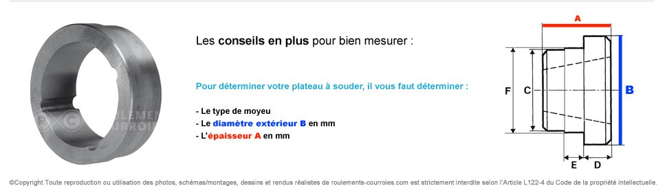 Plateau à souder en acier. Ils ont un alésage conique leur permettant de recevoir un moyeu amovible.