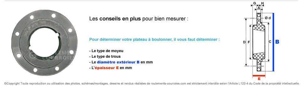 Plateau à boulonner permettant de recevoir un moyeu amovible